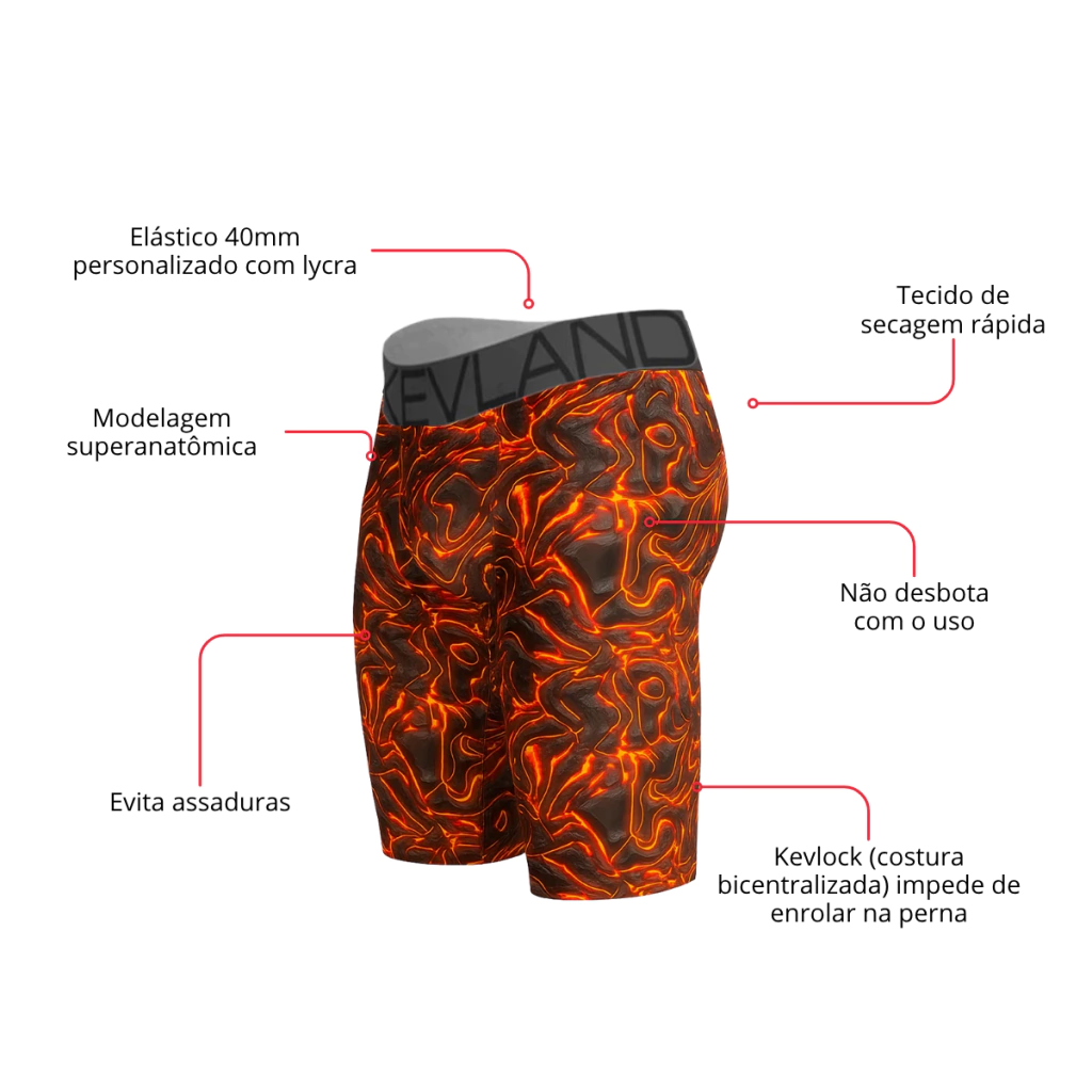 Sistema Exclusivo KEVLAND: Evita que a perna da cueca suba, proporcionando liberdade de movimento.